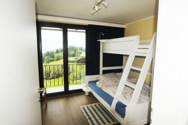 2 Schlafzimmer mit Etagenbetten, Liegefläche unten 140 x 200 cm, Liegefläche oben 90 x 200 cm